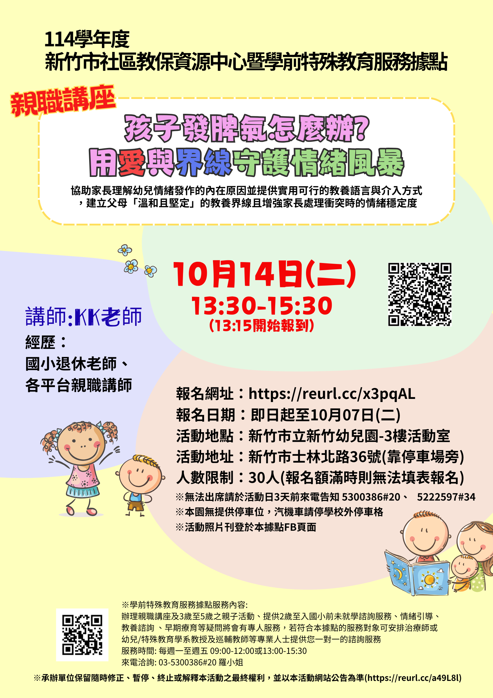 轉知:市立新竹幼兒園辦理「孩子發脾氣怎麼辦?用愛與界線守護情緒風暴」親職講座
