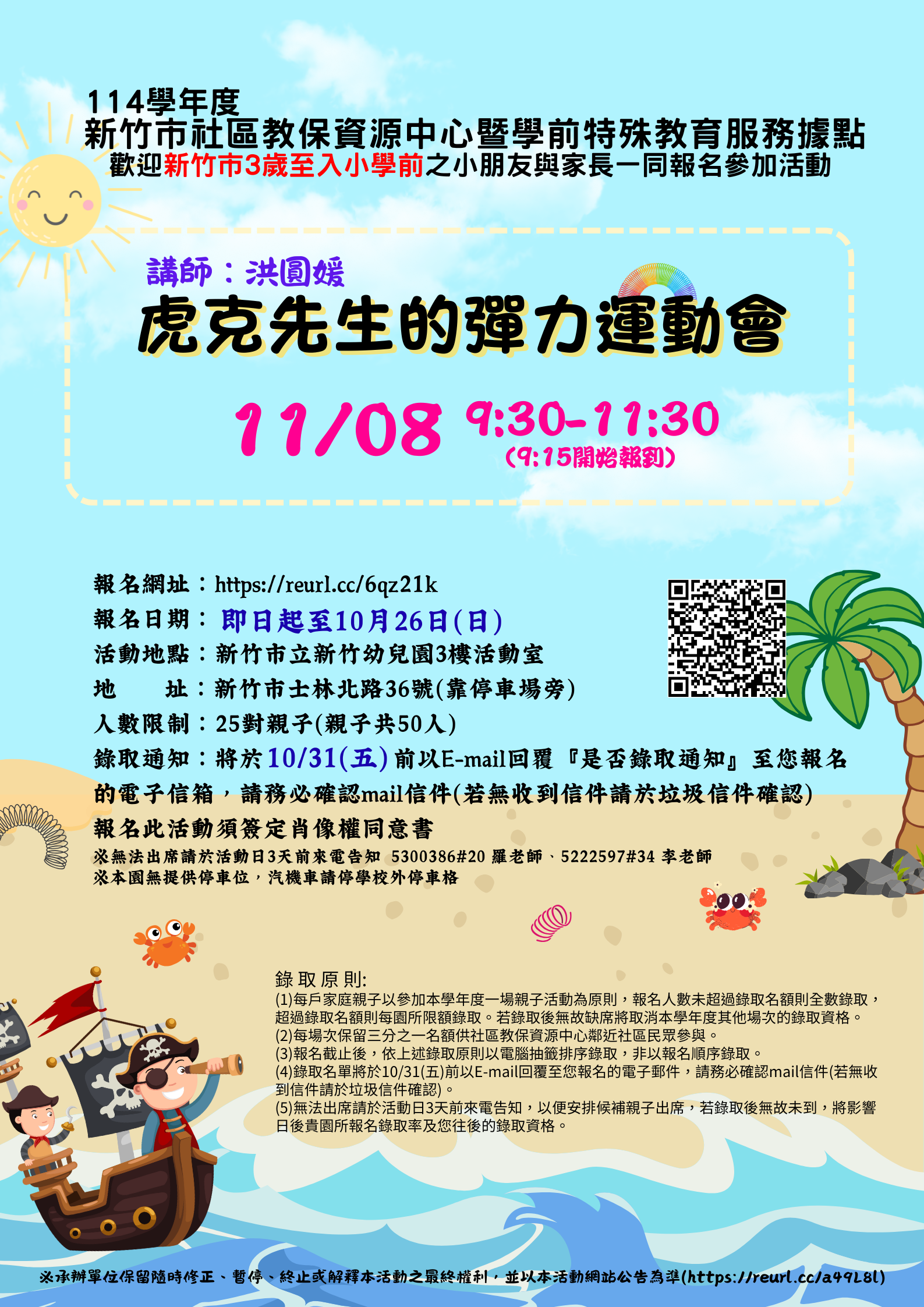 轉知:市立新竹幼兒園辦理親子活動:「幼兒科學-虎克先生的彈力運動會」