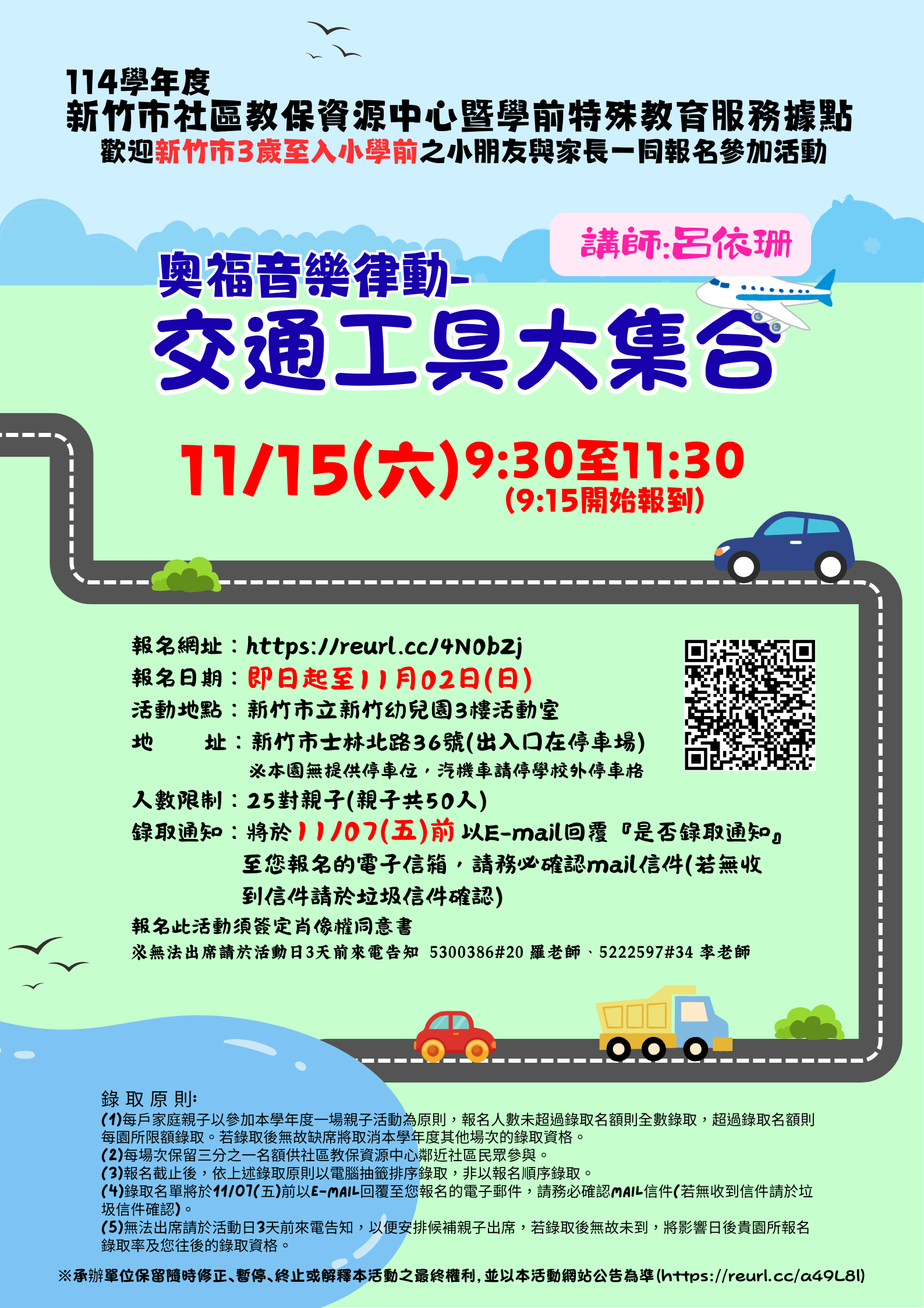 轉知:市立新竹幼兒園辦理親子活動:「交通工具大集合」